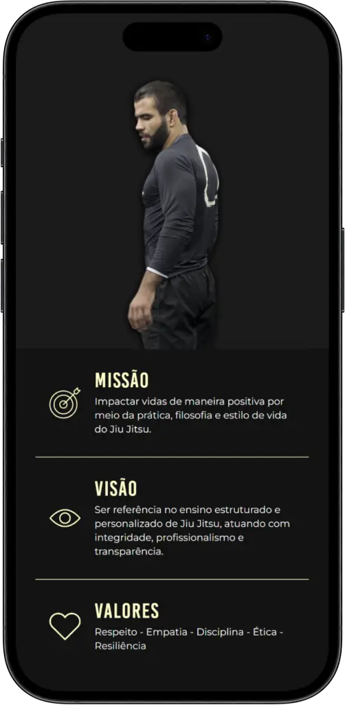 Construir um site visualmente impactante, que facilitasse o acesso para informações e conteúdos úteis, como os professores, a história do Jiu-Jitsu e os planos disponíveis.